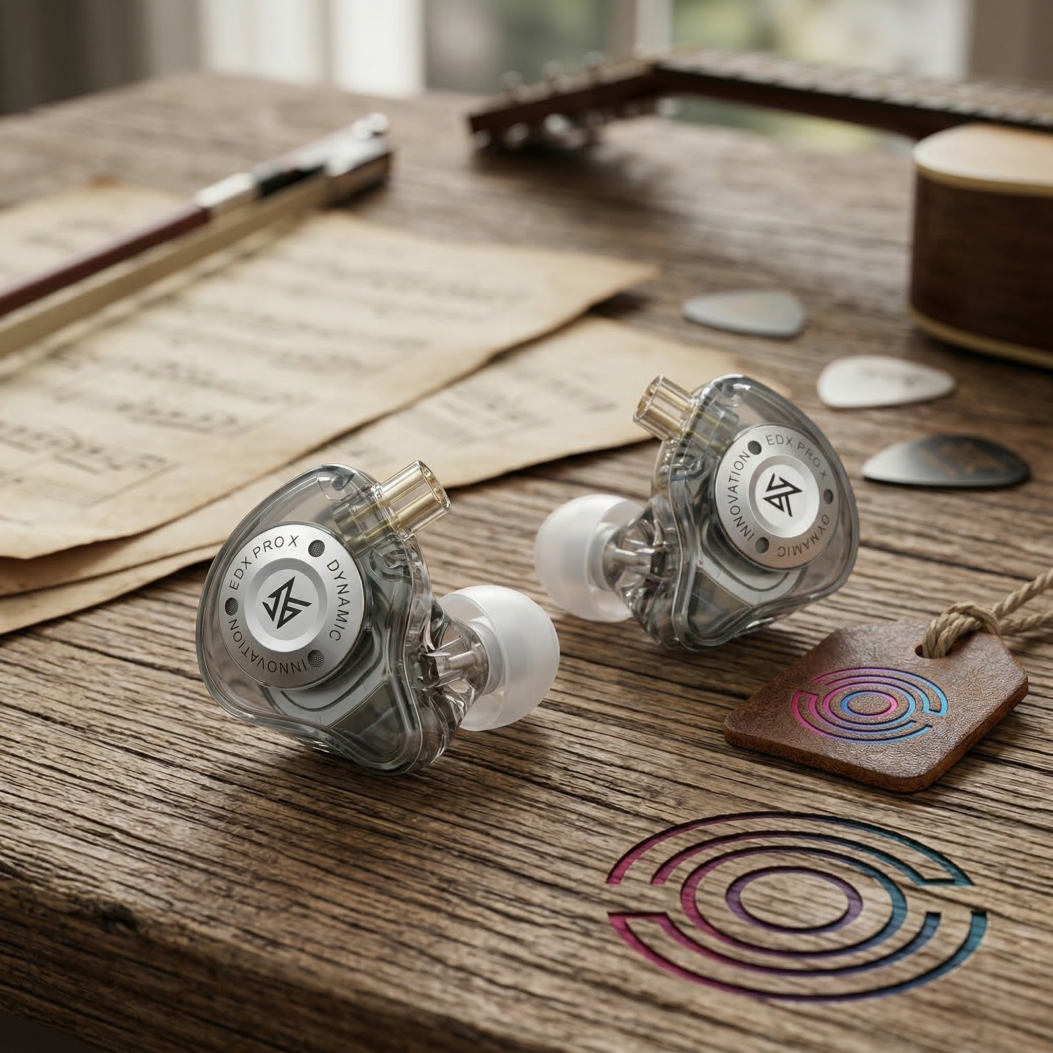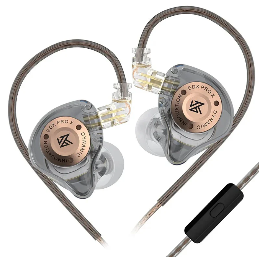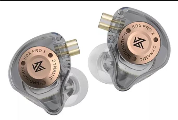 Los KZ EDX Pro X mantienen la estética semi-transparente característica de la marca, permitiendo ver la ingeniería interna del auricular. Están fabricados con una resina ligera de alta resistencia e incrustaciones metálicas que les dan un aspecto moderno y robusto.